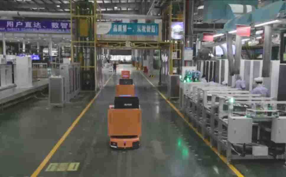 为车载冰箱物流配送打造的智能解决方案,,,,包含产中物流通过潜伏举升AMR搬运至线边,,,产后成品物流智能仓储,,,流程包含产中物流智能齐套入库,,,线边安灯叫料AMR智能配送至线边,,成品入库、、、出库,,,通过无人堆高车机器人,,,,智能仓储管理替代人工作业管理,,实现更高存储、、更高效率、、、更具柔性化的解决方案。。。